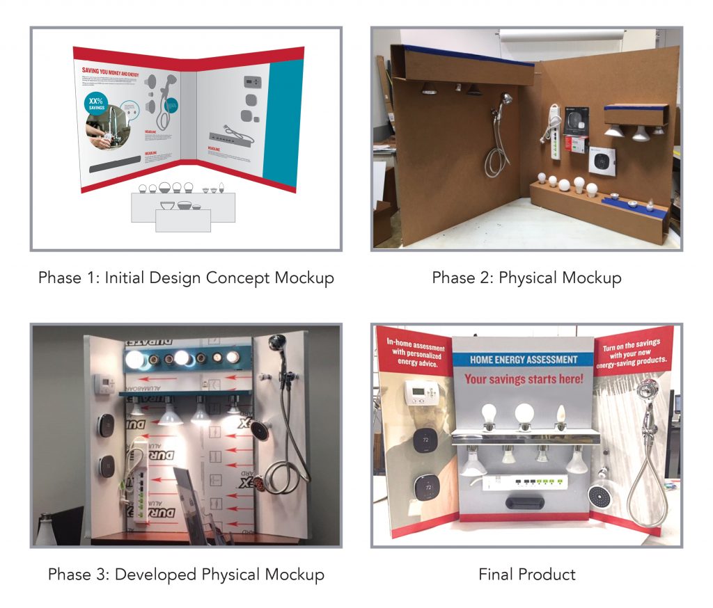 Our Solution: Liberty provided conceptual mock-ups understanding that the display needed to be easily transportable and simple to deploy. Once the structure was determined, Liberty’s Design staff prepared graphics and messaging to support program goals and energy-efficient products. Liberty’s Wide Format department then printed, assembled and finished the graphics into a working display showcasing the products available to residential customers who participated in the Home Energy Assessment Program. Since April 2019, this display has been in use traveling to community outreach and education events across the country.
